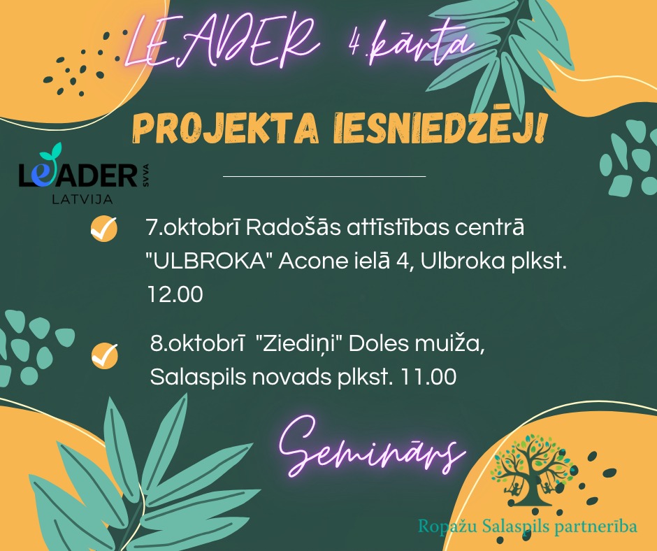 7. un 8. oktobrī aicinām uz informatīvajiem semināriem